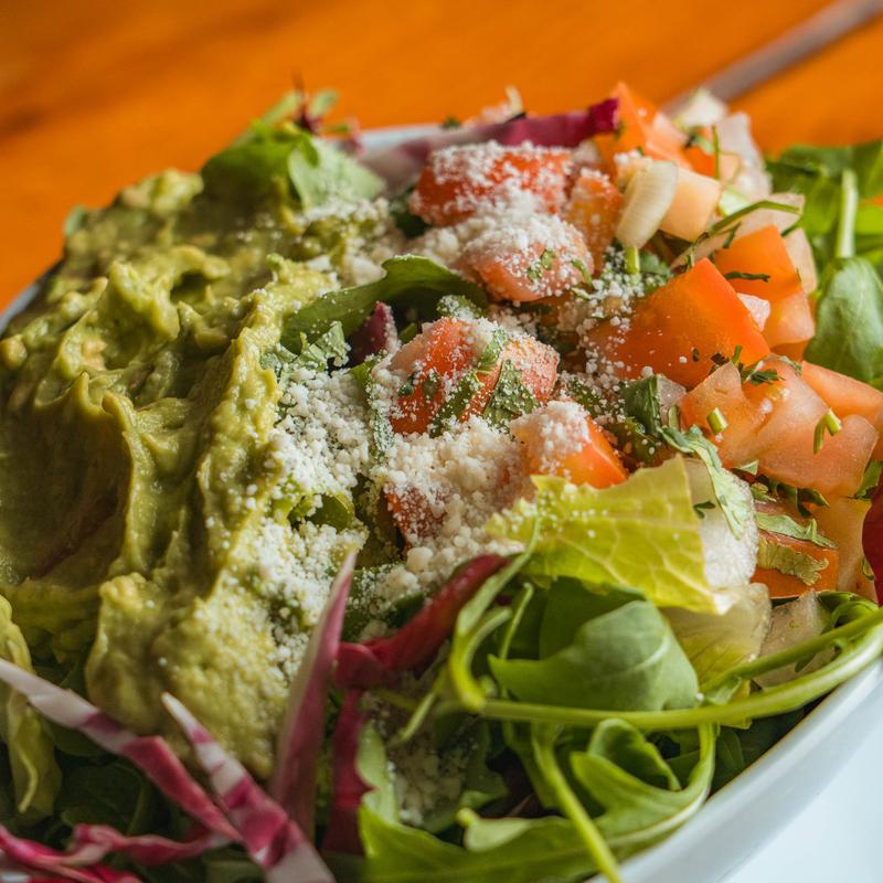 Fresh lettuce, arugula and radicchio with Homemade guacamole, fresh pico de Gallo and original Mexican cotija cheese Balsamic dressing on side