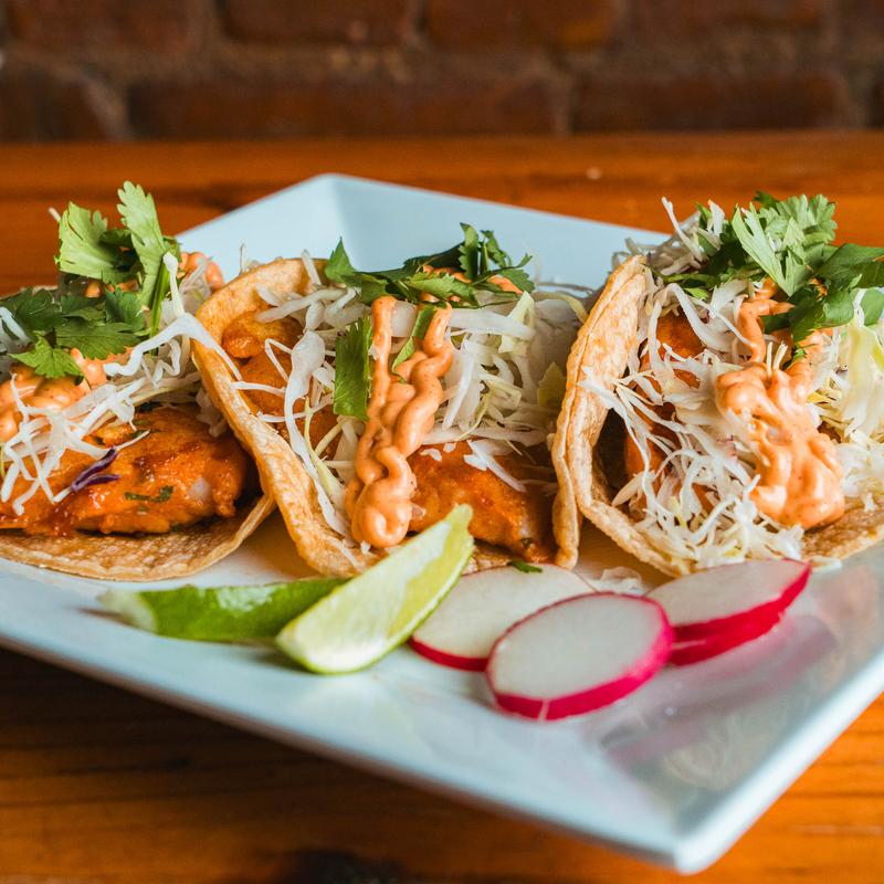 Served on a soft corn tortilla with guacamole sauce and a little onion and cilantro. Enjoy! Fish taco served on a soft corn tortilla, lettuce, cilantro, onions and green avocado sauce. All tacos served with sliced radish and fresh lime wedge on the side.